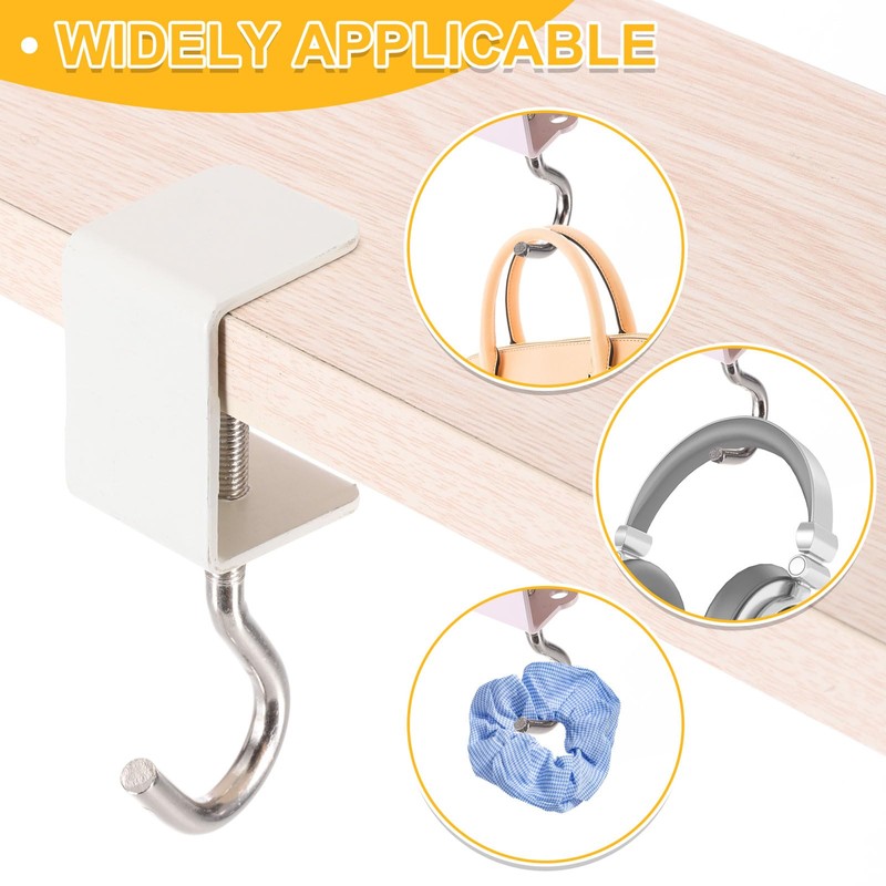 - This desktop hook clip is a practical hanging storage gadget. Suitable for places such as home, kitchen or office, it can be easily installed on tables, bookshelves, cabinets, tool racks, etc. Suitable for placing handbags, headphones, backpacks, clothes, keys, umbrellas, cables, etc
