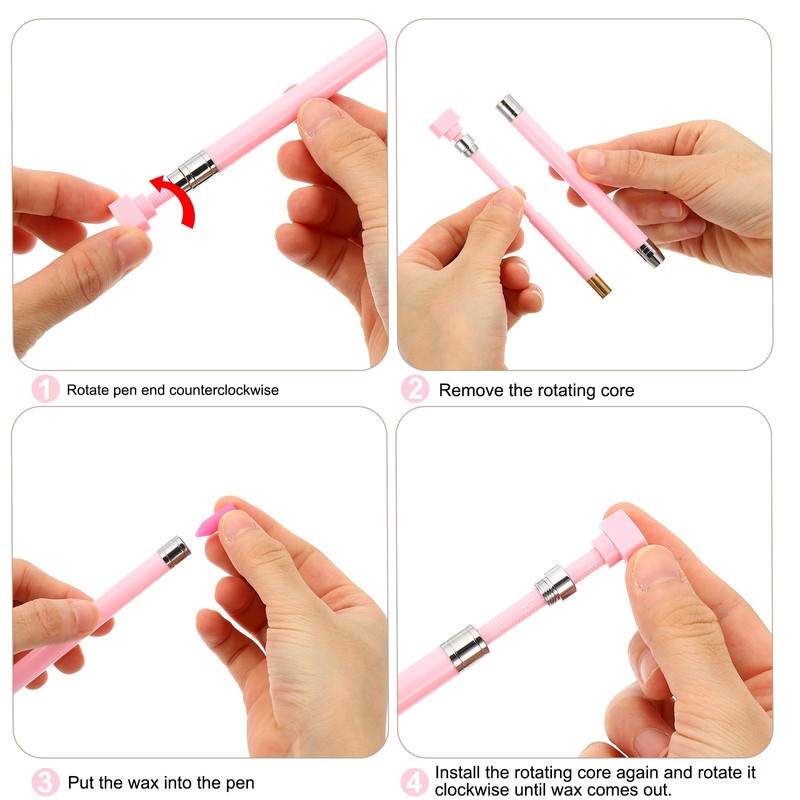 - Specification: Wax Length: 13. 5 cm / 5.3 Inch; Material: Acrylic, Stainless Steel, Wax; Color: Pink; Packing List: 2 Pcs x Drill Pen, 4 Pcs x Replacement Wax