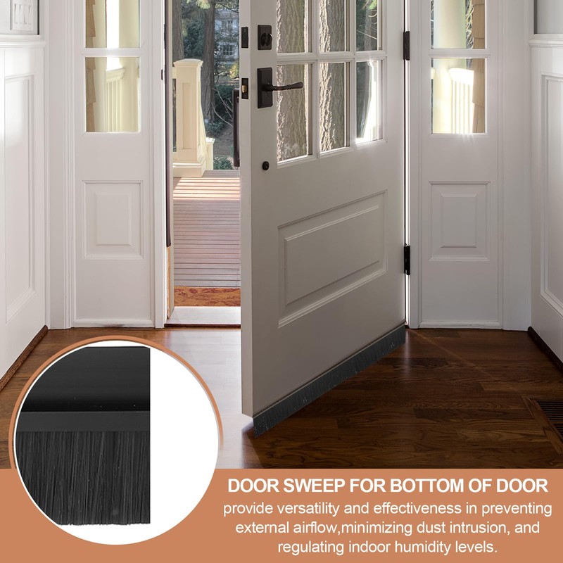 - Application: Door brush sweep provides versatility and effectiveness in preventing external airflow, reducing dust ingress, and regulating indoor humidity levels. They are well-suited for entrance at homes, stores, clubs, or restaurants.