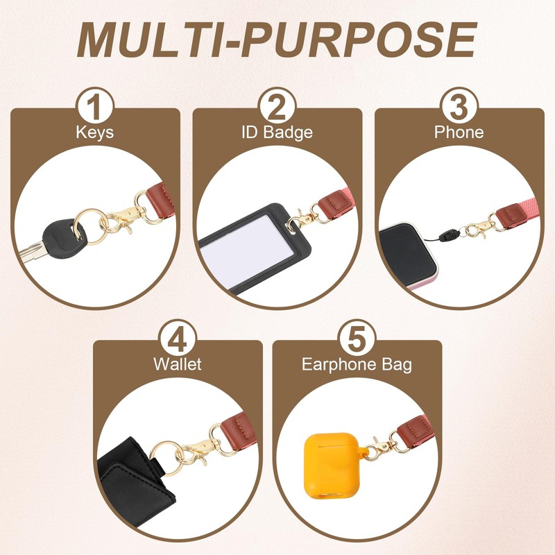 - Advantage: Crafted from durable braided nylon and genuine leather, this lanyard combines style with functionality. The 360° rotating metal clasp and elastic band adapt to various neck sizes, offering a snug fit without deformation. Lightweight yet sturdy, it resists fading and breakage, suitable for daily use. Multiple color options let you match outfits or mood.