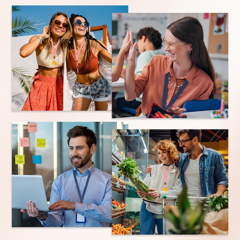 Simply slip the lanyard over your head or clip to the bags. The stretchy strap adjusts effortlessly for all-day comfort. Attach keys, cards, or phones through the secure key ring.