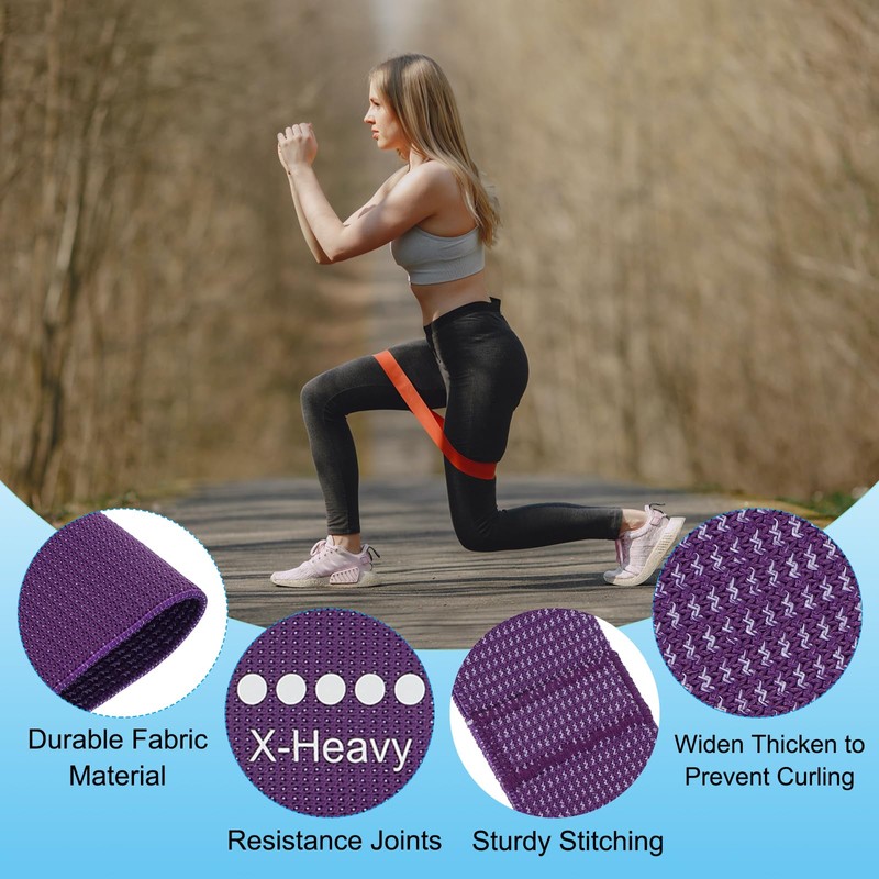 - Color: Purple; Resistance Strength: 30-40 LBS (X-Heavy); Size: 62 x 5 cm / 24.4 x 2 inch (L*W); Material: Polyester Cotton, Latex Silk; Packing List: 5Pcs x Exercise Bands