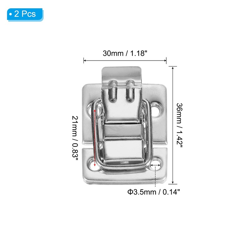 - Material: Iron, Color: Silver, Size: 36 x 30 mm / 1.42 x 1.18 inch (LxW), Mounting Hole Distance: 21 mm / 0.83 inch, Mounting Hole Diameter: 3.5 mm / 0.14 inch, Packing List: 2 x Suitcase Lock Hasp, Screws