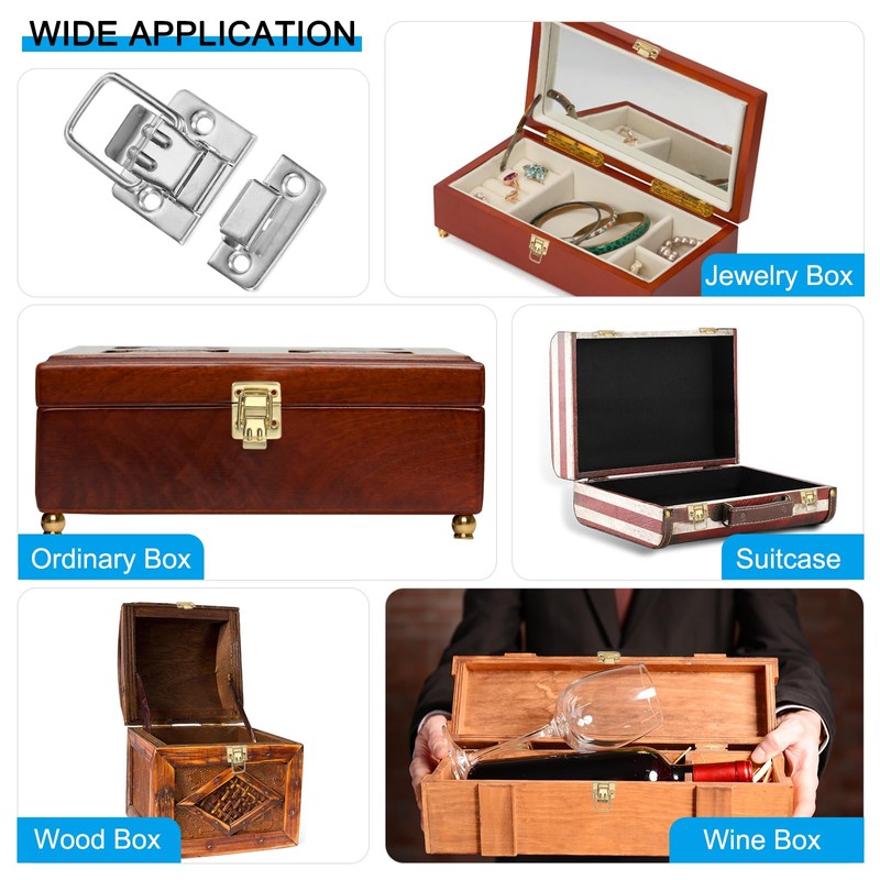 - Application: The toggle catch lock is suitable for commonly used in homes, offices, bedrooms, garages, workshops, etc. Such as tool boxes, cabinets, jewelry boxes, bags, suitcases, drawers, hand tool boxes and other wooden boxes, etc., to fix the tools that keep the boxes and luggage closed.