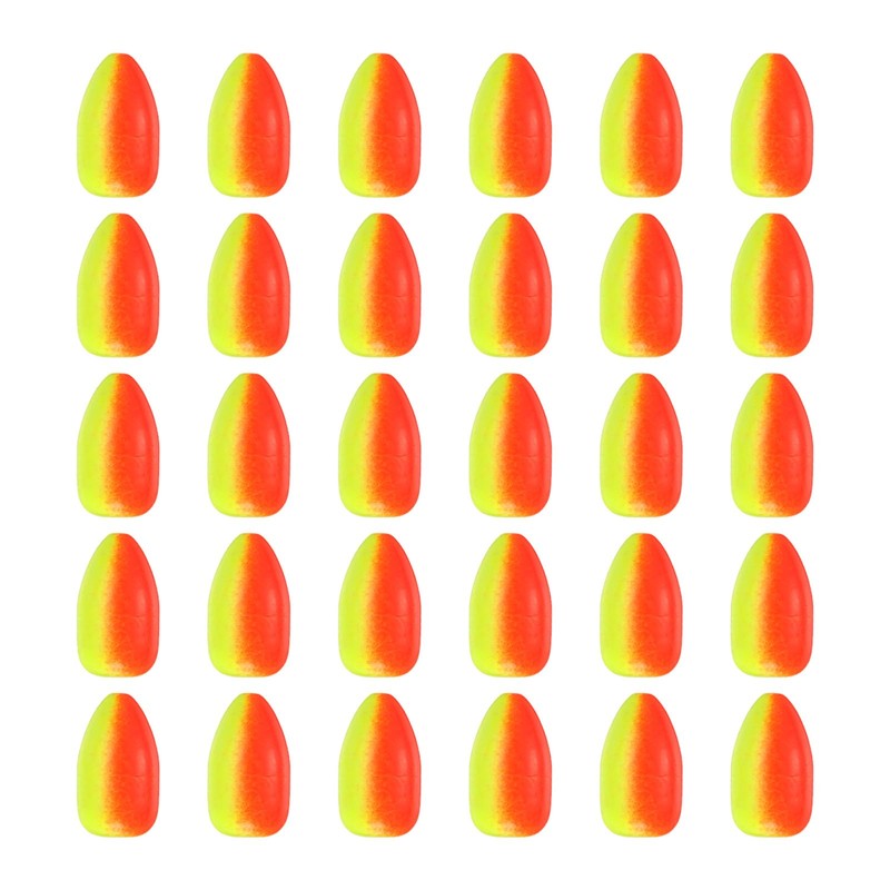 - Material: EVA Foam; Color: Red-Yellow; Overall Size: L: 20 x 11.5mm / 0.79 x 0.45 inch; Packing List: 30 x Floats Fishing