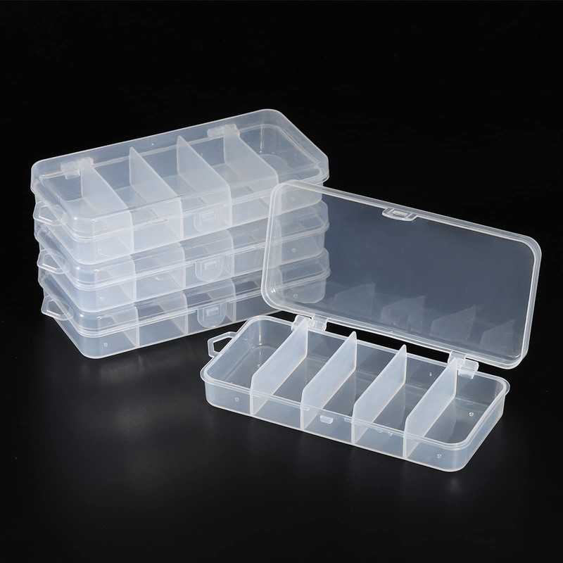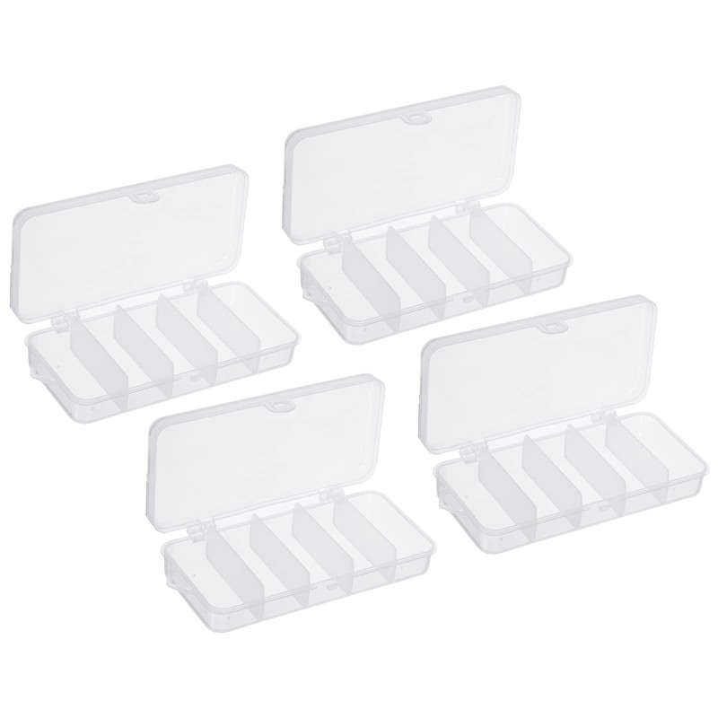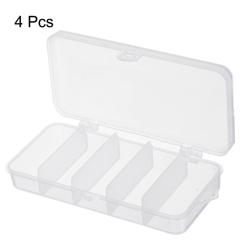 PATIKIL Fishing Tackle Box, 4 Pack 4.9 x 2.4 x 1 Inch Plastic 5-Grid Fish Lure Bait Hooks Accessory Storage Container, Clear