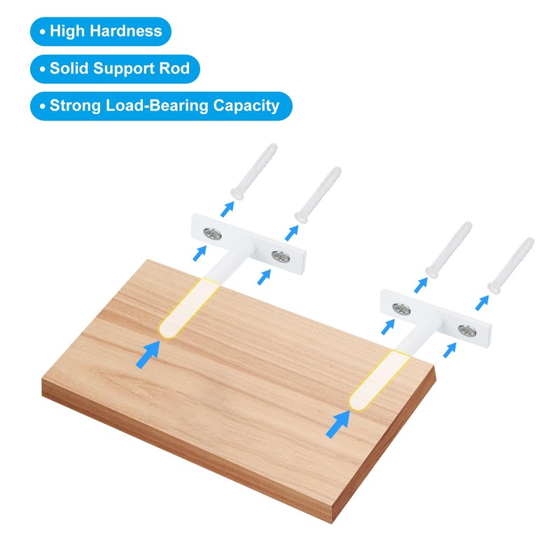 PATIKIL Floating Shelf Bracket 5", 4 Set T Brackets for Shelves, Wall Mounting Blind Shelf Support Hidden Brackets with Screws for Floating Wood Shelves, White