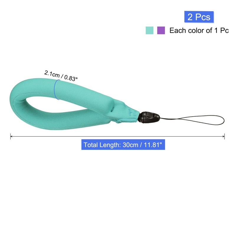 - Specification: Color: Sky Blue, Purple; Material: Neoprene (covered with cloth); Buoyancy: 250gram / 8.81ounce; Strap Diameter: 2.1cm / 0.83"; Total Length: 30cm / 11.81"; Package List: 2 x Floating Wrist Straps