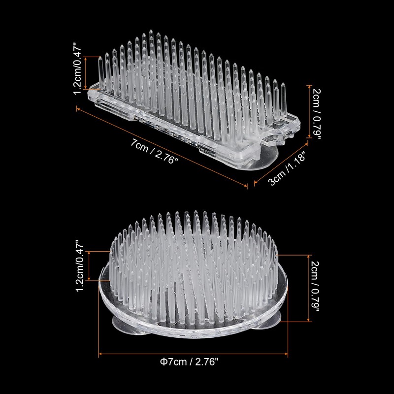 - Shape: Round, Square; Pin Length: 1.2cm / 0.47inch; Round Flower Frog Size: 7 x 2 cm / 2.76 x 0.79 inch (Dia*H); Square Flower Frog Size: 7 x 3 x 2 cm / 2.76 x 1.18 x 0.79 inch (L*W*H); Color: Transparent; Material: Plastic; Packing List: 2pcs x Clear Flower Frogs (1pcs of Each Style)