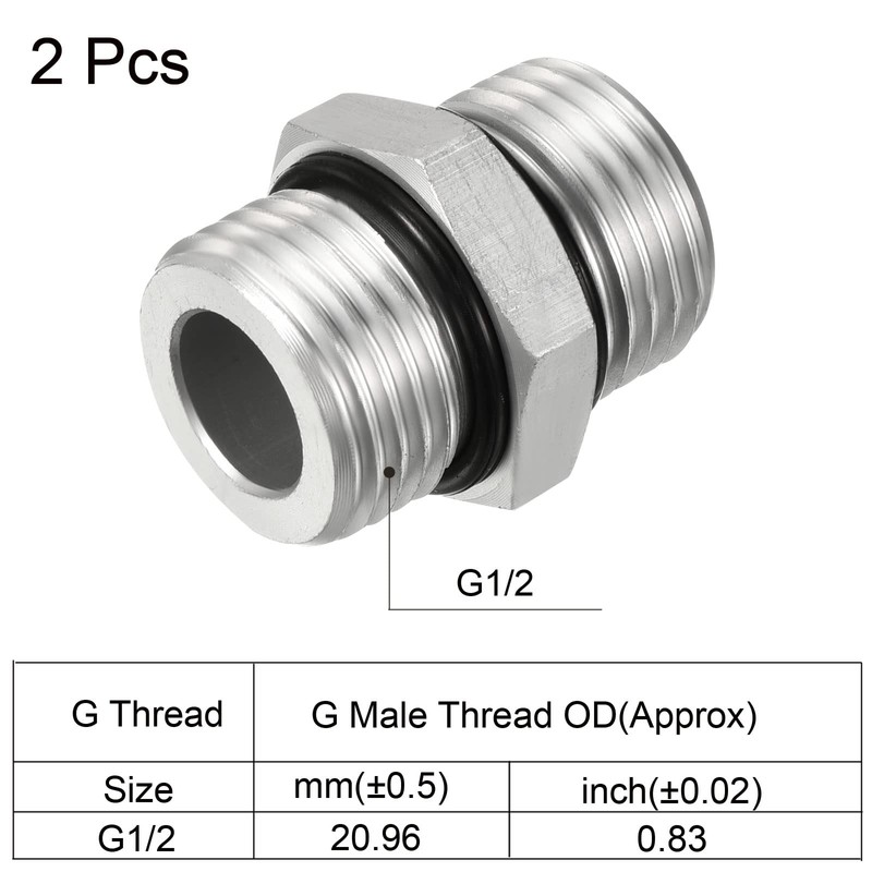 - Male Thread: G1/2; Male Thread Length: 12mm/0.5"; Overall Dimension: 30 x 24mm/1.2" x 0.9"(L*W);Color: Silver Tone;Material: Aluminum Alloy;Package Content:2 x Pipe Adapter Fitting