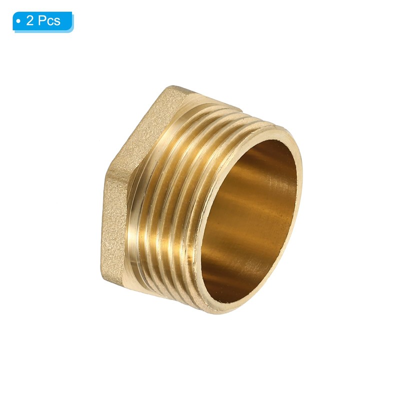 - Specification: Material: Brass; Color: Gold Tone; External Thread Size: G1''; Hex Width: 33.5mm / 1.32inch; Total Height: 18.5mm / 0.73inch; Packing List: 2 x Pipe Plug