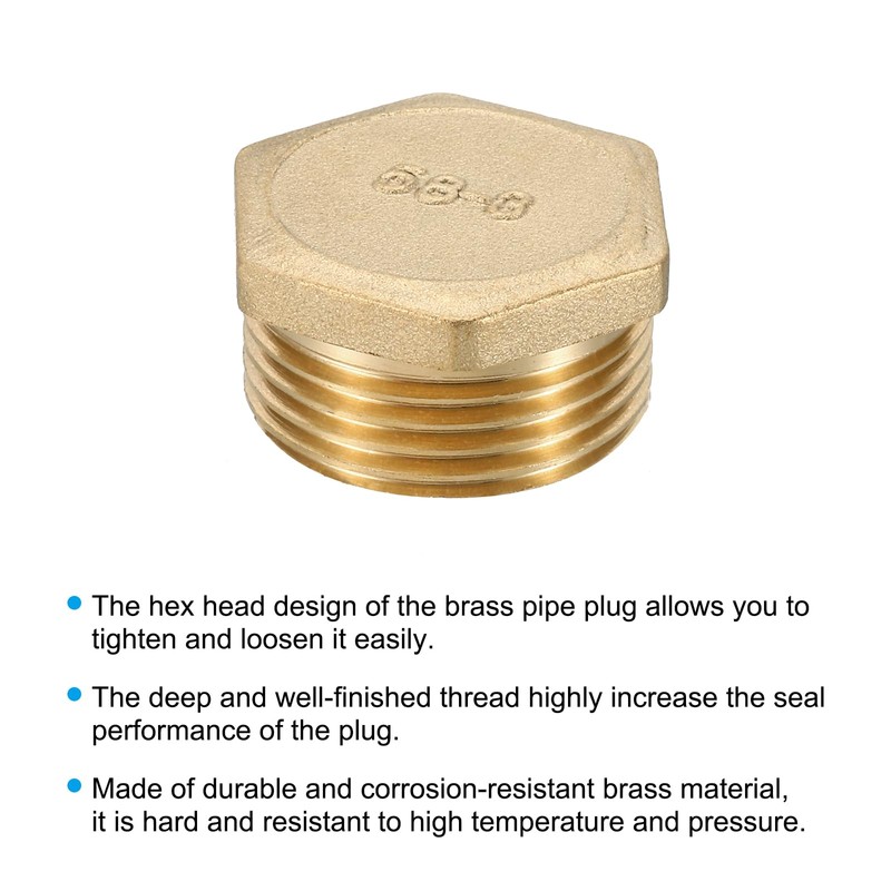 - Advantage: The hex head design of the brass tube plug allows you to easy tighten and loose it. Made of durable and corrosion-resistant brass material, it is hard and resistant to high temperature and pressure. The deep and well-finished thread highly increase the seal performance of the plug.