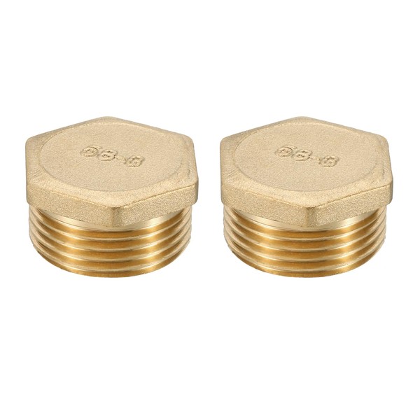 PATIKIL G1 Brass Pipe Plug, 2pcs Male External Thread Hex Garden Hose End Cap Socket Plugs Pipe Fitting for Oil Water Hydraulic Pipeline