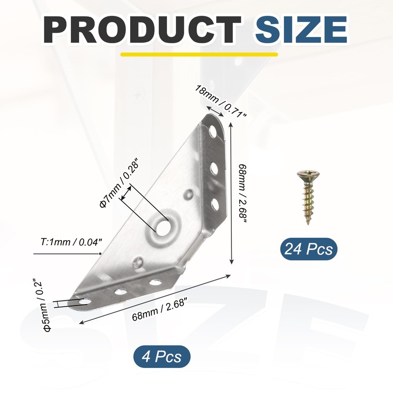 Packing List: 4 x Triangle Corner Braces Bracket, 24 x Mounting Screws