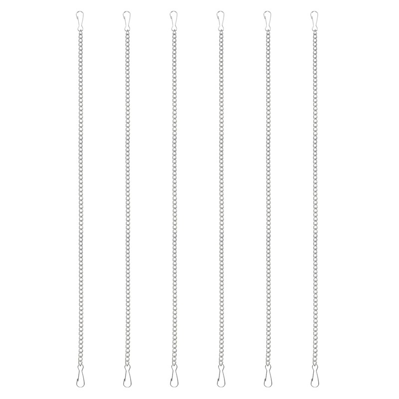 - Material: Stainless Steel; Color: Silver; Size: 50 cm x 5 mm / 1.64 ft x 0.2 inch (LxW); Chain Link Length: 7 mm / 0.28 inch; Hooks Length: 25 mm / 0.98 inch; Single Load Bearing: 2 kg / 4.4 lb; Packing List: 6 Pcs x Hanging Chains