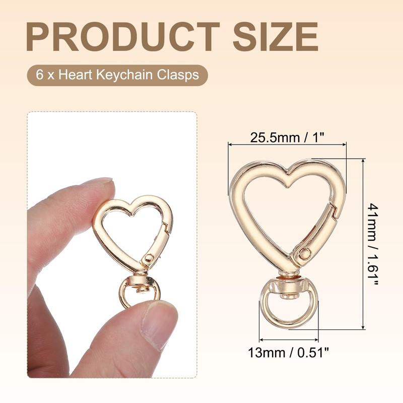 - Total Size: 41 x 25.5 mm / 1.61 x 1 inch (L*W); Ring Diameter: 13 mm / 0.51 inch; Packing List: 6 x Heart Keychain Clasps