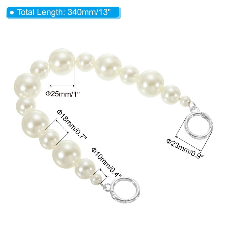 - Size: Total Length: 34cm/13", Pearl Diameter: 10mm/0.4", 18mm/0.7", 25mm/1", Metal Buckle Size: 23mm/0.9", Packing List: 1 Pcs x Pearl Bead Purse Chain Strap.