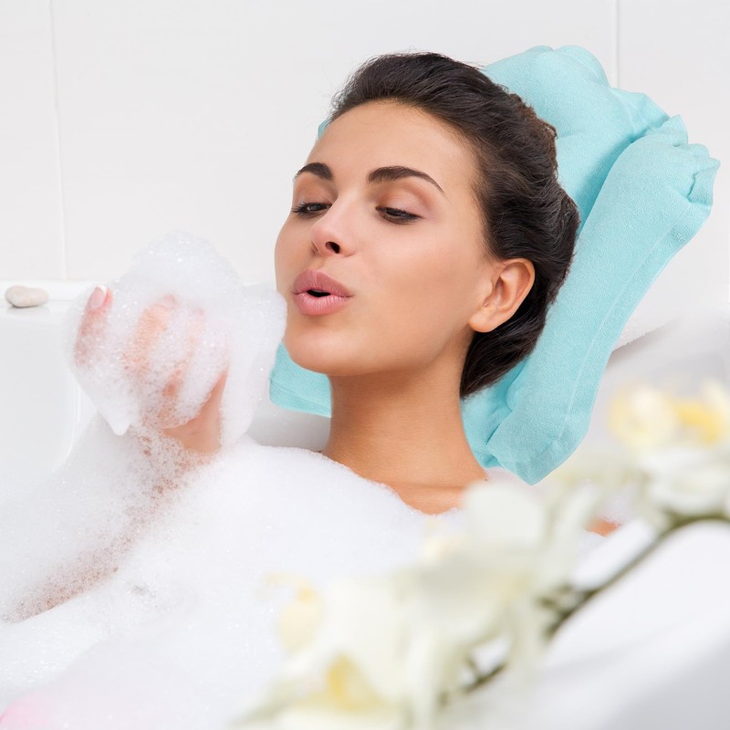 2. It is equipped with suction cups at the back, which can be attached firmly, and help you secure the bath pillow. Simple to inflate, does not take up space, and is convenient to carry, letting you enjoy a comfortable bathing time.