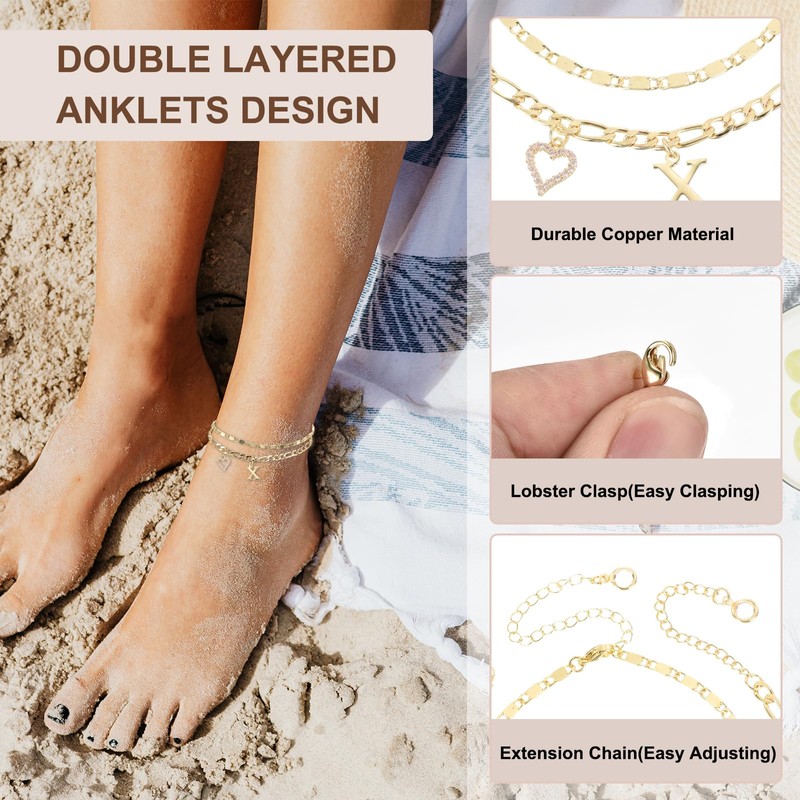 - This anklet has a beautiful appearance and consists of two separate chains, decorated with a heart pendant and a letter pendant. It is perfect for daily wear, special occasions such as prom dinner engagement anniversary, or a fashionable accessory for summer beach outings. It can also be given as a gift to your family or friends on Christmas Thanksgiving Valentine's Day birthday parties, etc.