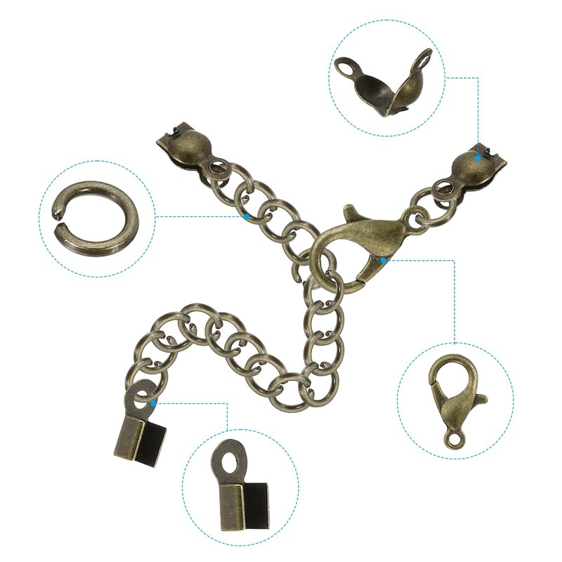 - Specification: Color: Bronze; Material: Alloy; Lobster Clasp Size:12x6mm/0.47x0.24 inch; Bead Tips Knot Covers Size:7x4mm/0.28x0.16 inch; Open Jump Ring Size:4x4mm/0.16x0.16 inch