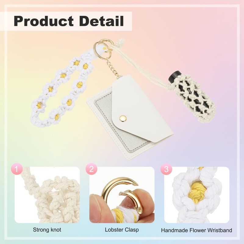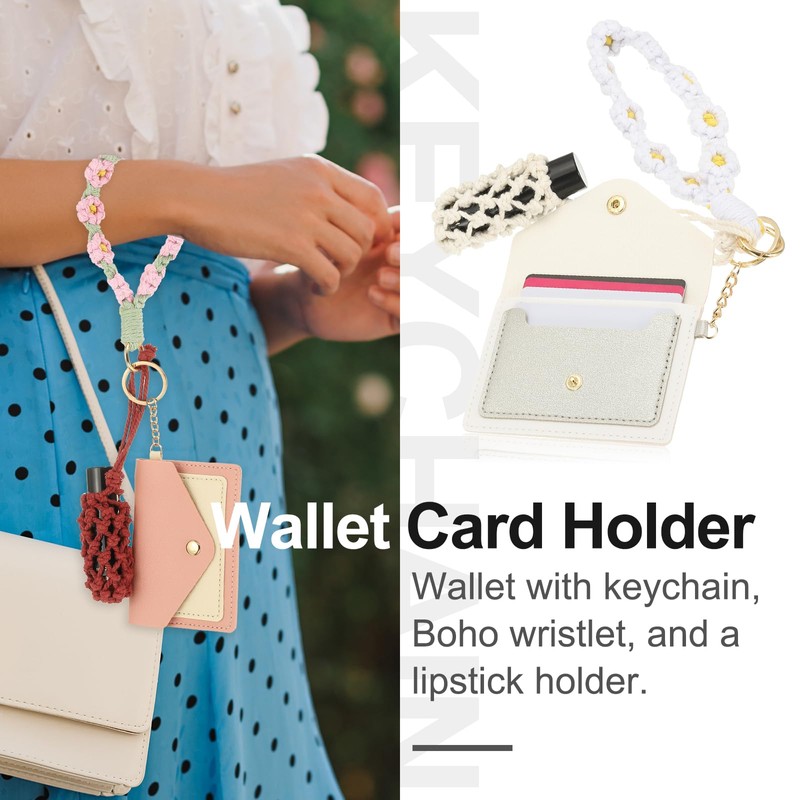 - Instruction: The slim and lightweight card holder wallet with a keychain, handmade boho wristlet, and lip stick holder, can be easily hung on your hand or put in your pocket, coat, or small bag. It can also be hung on your bag or other items for easy carrying.