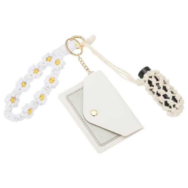 - Specification: Material: PU Leather, Alloy, Cotton Thread; Color: White; Wallet Size: 11 x 8cm / 4.33 x 3.15inch (LxW); Bracelet Size: 19 x 2cm / 7.48 x 0.79inch (LxW); Lip stick Holder Size: 7.5 x 3cm / 2.95 x 1.18inch (LxW); Packing List: 1 Set Keychain Wristlet Wallet.