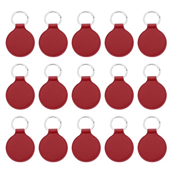 PATIKIL Leather Blank Keychains, 15Pcs Round Keychain Blanks Double Side Laser Engraving Key Chains for Embossing, UV-Printing, DIY Craft, Dark Red
