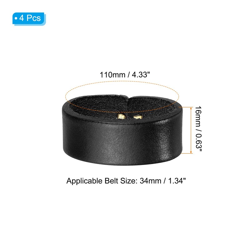 - Material: Leather; Size: 41x36mm / 1.6x1.4inch(L*W); Applicable Belt Size: 34-38mm / 1.3-1.5inch; Packing List: 4 x Leather Belt Keeper