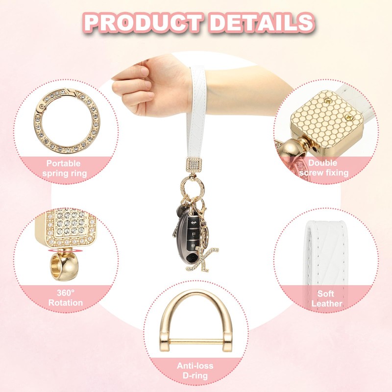 • Note: The package contains 1 Leather Wristlet, 1 letter Charm, 1 D-ring, 2 key rings and a small screwdriver. You can use the above accessories to DIY your keychain design