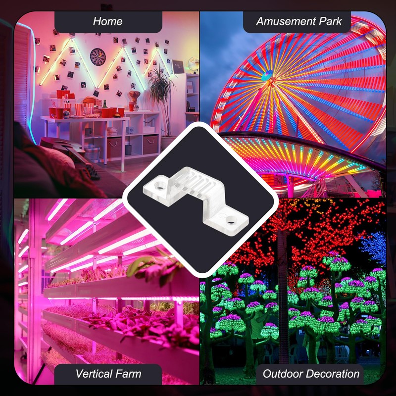 - Advantages: LED Light Clips are made of clear plastic, rustproof, windproof, and weather-proof, can hide in sight, with no damage to the light color, suitable for indoor and outdoor use. These brackets offer several benefits, including their compatibility with popular LED strip light models, easy installation process, and cable management capabilities. They can be used both indoors and outdoors, making them suitable for various applications.