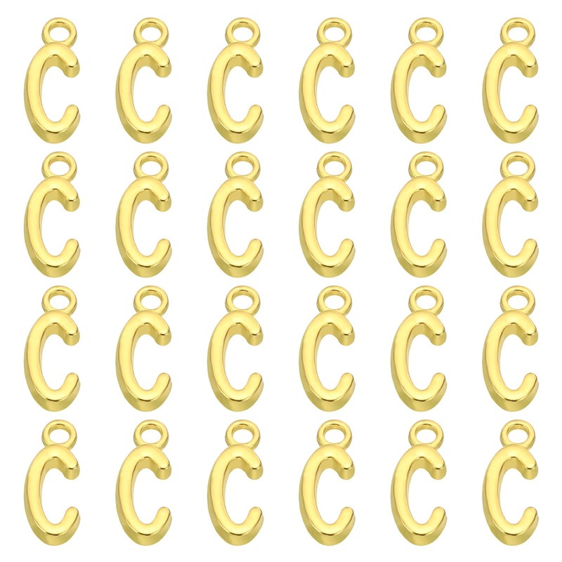 - Alphabet Charm Color: Gold Tone; Material: Alloy; Hanging Hole Diameter: 2 mm / 0.08 inch; Size: 15 x 6 mm / 0.59 x 0.24 inch(L*W); Packing List: 50 x Metal Letter Drops Charm