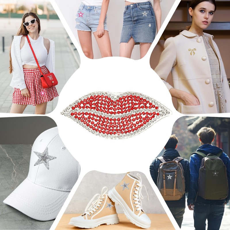 - Specifications: Color: Red; Material: Rhinestones, Hot Melt Glue; Size: 6.2x2.7cm/2.5x1.1 inch(L*W); Style: Lip; Package List: 20 Pcs Rhinestone Lip Applique Patches.