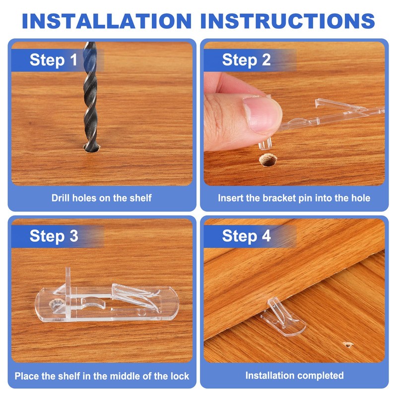 - Application: Self-locking cabinet shelf clips are designed to securely secure and lock shelves, preventing them from sliding or falling. Perfect for furniture manufacturing, kitchen cabinet shelves, bookcases, wardrobes, closets, and other storage systems where shelves need to be securely fixed in place
