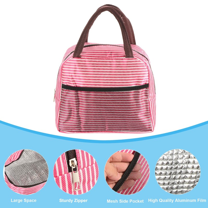 PATIKIL Lunch Box for Women/Men, Insulated Lunch Bag Leakproof Tote Bag with Pocket Reusable Lunch Container for Work Picnic Outdoor 9.1"x4.7"x7.9", Rose Red