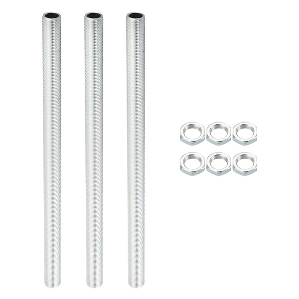 PATIKIL M12 Thread 7.87" Lamp Pipe Kit with Lock Nuts, 3 Set All Thread Rods Fasteners Hardware for Chandelier Ceiling Light DIY, Zinc Plating