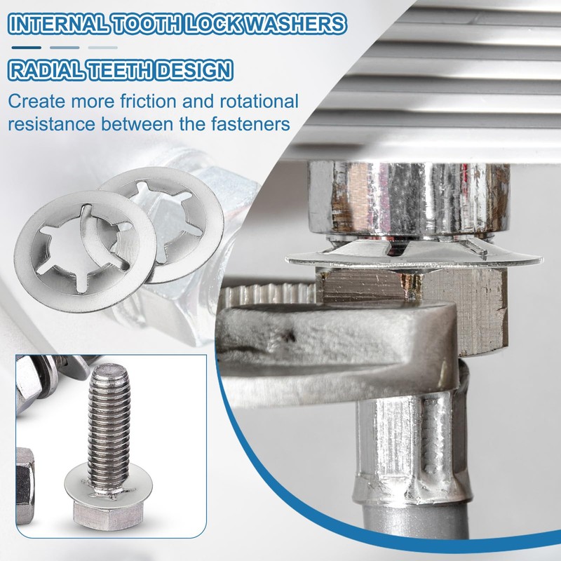 - Feature: Star internal tooth lock washers feature radial teeth that create more friction and rotational resistance between the fasteners and substrate for superior locking capability