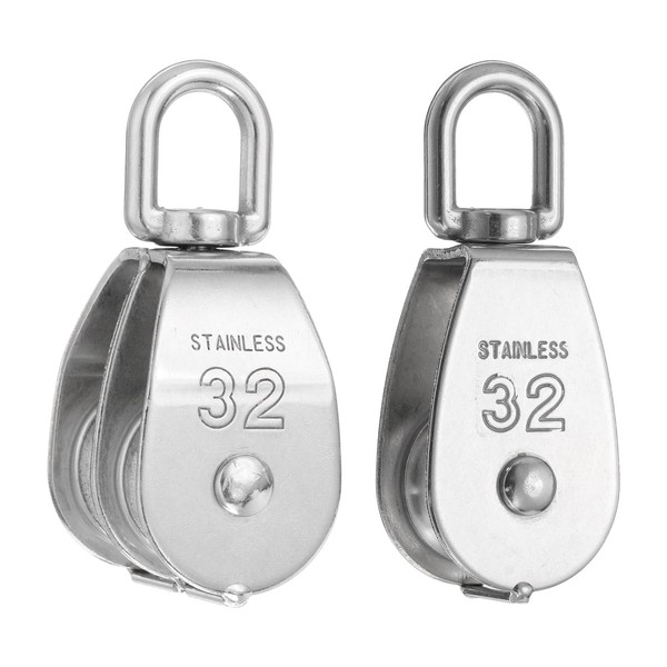 PATIKIL M30 Pulley Block, 2 Pack Single Pulley & Double Pulley 304 Stainless Steel Heavy Wire Rope Hanging Wire Crane Rope Lifting Swivel Hook, Loading 250KG/551LBS