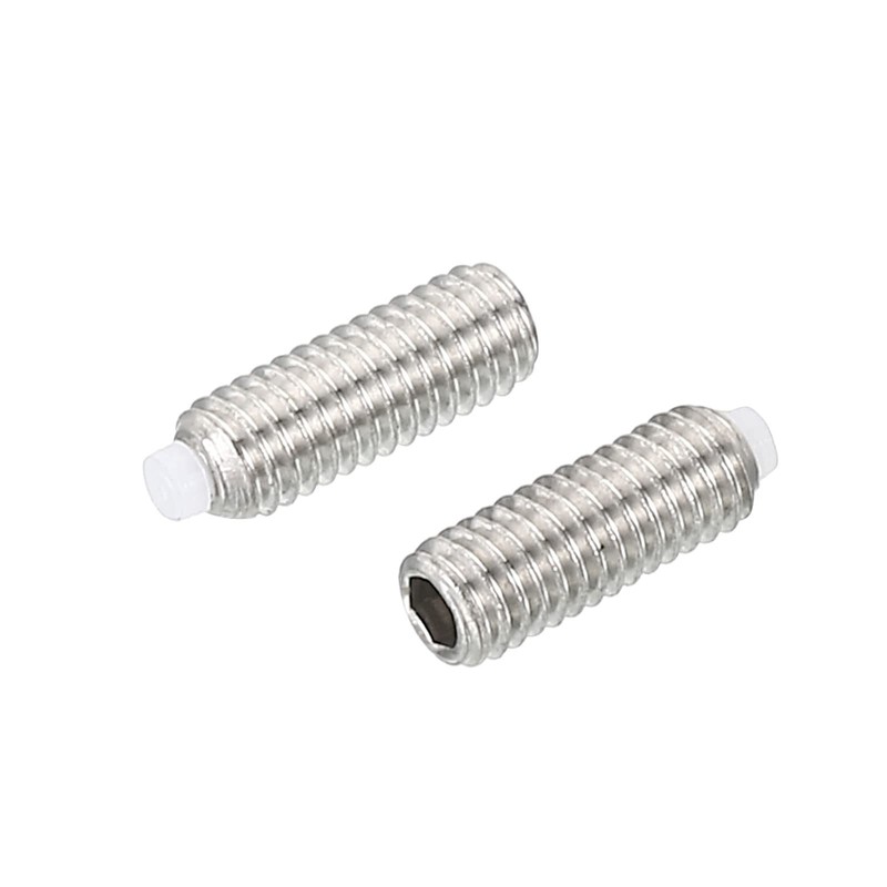 - Application: Nylon head set screws are non-destructive self-locking fasteners with protruding flat nylon tips at the end of their threads, which are hard and soft and will not cause surface damage to the workpiece. They can also absorb vibration and have functions such as shock absorption, buffering, insulation, and anti-skid. They are used to connect pulleys, collars, couplings, or gears to shafts, and can also be used to fix brittle materials such as glass, ceramic tiles, and acrylic plates.
