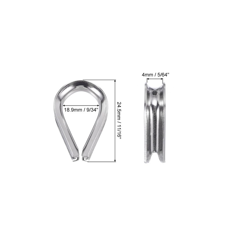 • Size: 10 Pcs of Wire Rope Thimbles, Length: 24.5mm / 0.96 Inch, Inner width:16.8mm / 0.66 Inch, Fit for wire rope diameter: 3/16"(4mm).