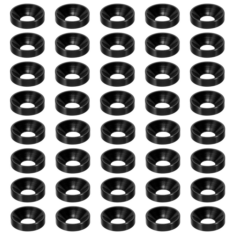 - Specifications: Color: Black; Material: Anodized Aluminum Alloy; Inner Diameter: 4.1mm / 0.16 inch; Fit for Screw or Bolt Size: M4; Outer Diameter: 10mm / 0.39 inch; Height: 2.5mm / 0.1 inch; Packing List: 60 x Countersunk Washer
