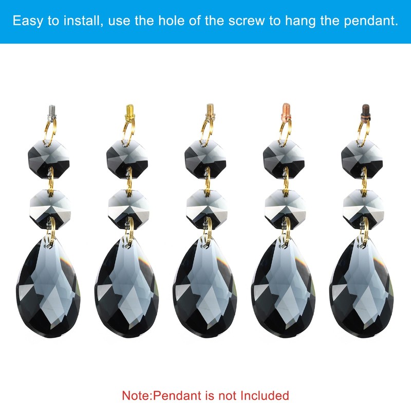 - Advantage: Our eye screws are versatile and can be used for a range of purposes, from hanging pendants and crystals to repairing furniture and manufacturing machinery. The hole in the screws makes them easy to hang and adjust, while the carbon steel construction ensures they will last for years to come.
