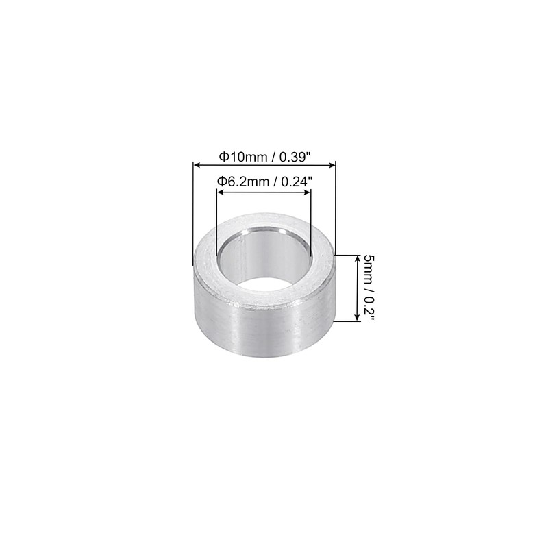 - Material: Aluminum; Size:6.2mm ID x 10mm OD x 5mm L / 0.24 x 0.39 x 0.2 inch (ID*OD*L)