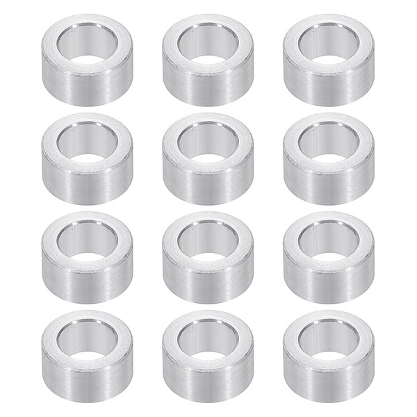 PATIKIL M6 Aluminum Spacers, 12pcs 1/4" x 3/8" Round Metal Spacers for 1/4 or M6 Screw Bolts, Unthreaded Standoff Bushing 3/16"L, 6.2x10x5mm