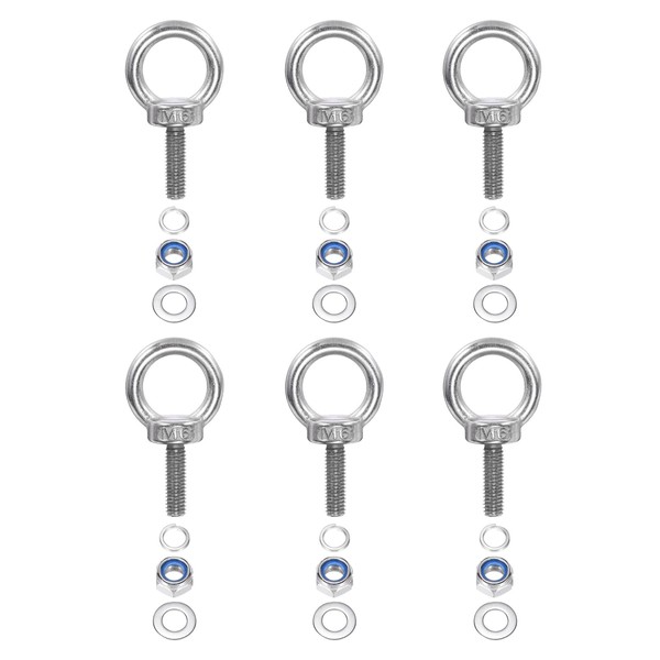 - Specification: Color: Silver Tone; Material: Stainless Steel; Thread Size: M6 x 20mm; Ring Inside Diameter: 17mm / 0.67 Inch; Package List: 6Pcs x Lifting Ring Threaded Eyebolt (with nuts gasket, flat washer, opening washer)