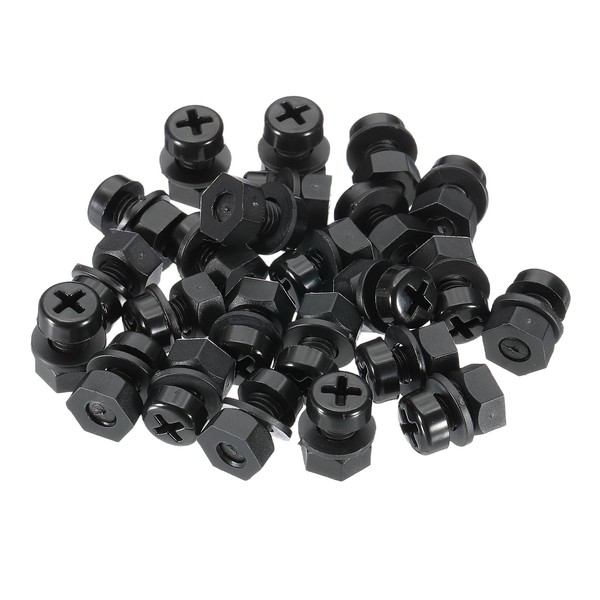 PATIKIL M6x10mm Black Nylon Bolts Plastic Nuts Full Thread Head Screws, 24 Pcs