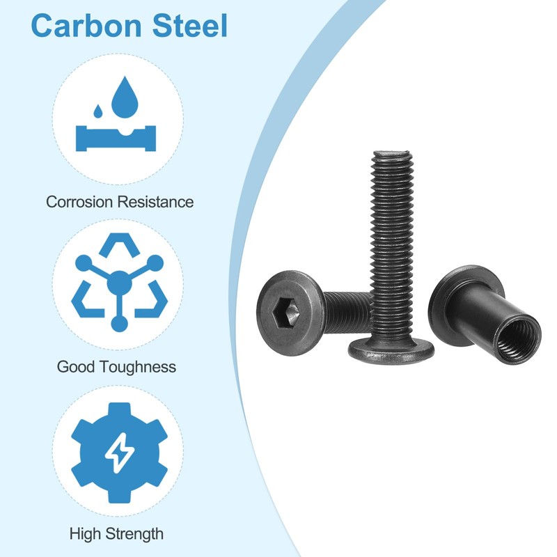 • PREMIUM MATERIAL: The socket head cap connecting bolt and nut is made of carbon steel, wear resistance, corrosion resistance, high hardness and good toughness, and good decoration.