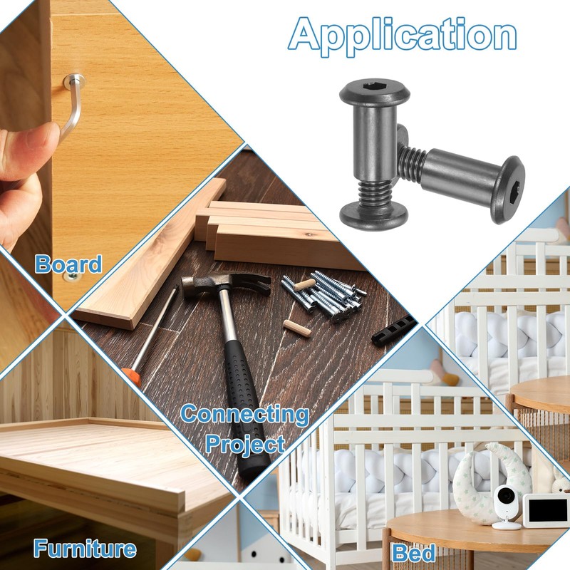 Suitable for a wide range of do-it-yourself projects, this fastener can be used in leather crafting, garment construction, or to connect various objects. It is great for securing thin photo albums, scrapbooks, leather bags, beds, tables, chairs, workbenches, boards, cabinets, cupboards, and other furniture. Additionally, it is suitable for joining wooden boards together, among other uses.