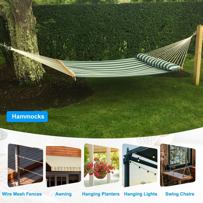 - Application: Stainless steel eye bolts are used for lifting and hanging applications, such as hanging lights, hammocks, swing chairs, securing ropes, and can also be used as hooks for wire ropes, clotheslines, or wire mesh fences.