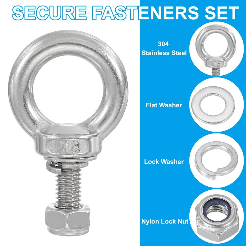 - Secure Fastening Solution: The lifting eye bolts are equipped with nylon lock nuts, lock washers, and flat washers, ensuring enhanced security and secure fastening.