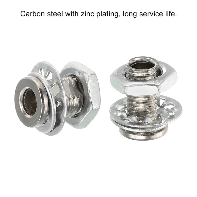 - Material: Carbon Steel; Surface Treatment: Zinc Plated; Screw Size: M8 x 1mm; Through Hole Bolt Size: 15 x 4.5 mm (H*ID); Hex Nut Size: 12 x 3 mm (W*T)